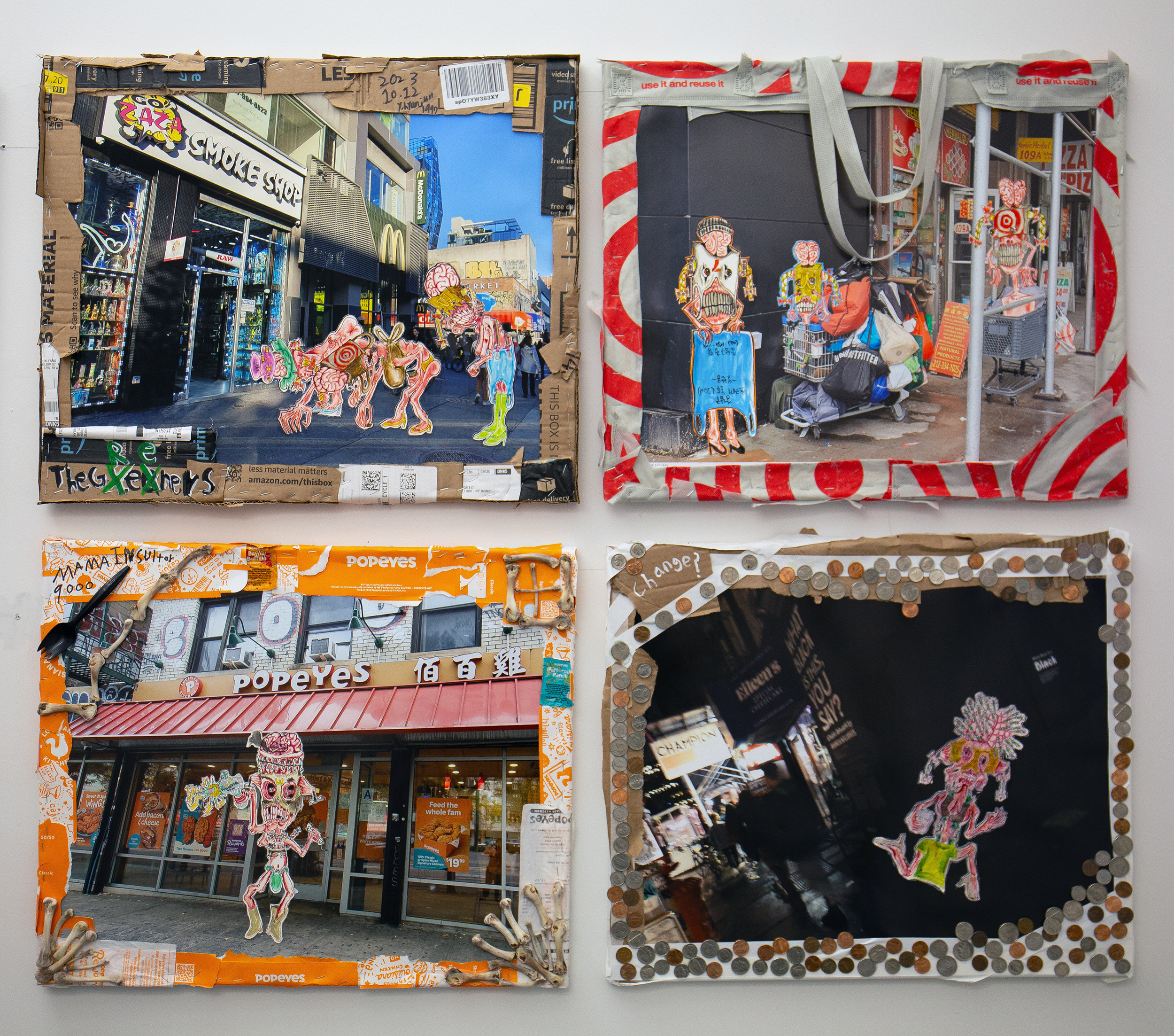amazon package box, water-based ink pen, varnish, acrylic paint, staples
