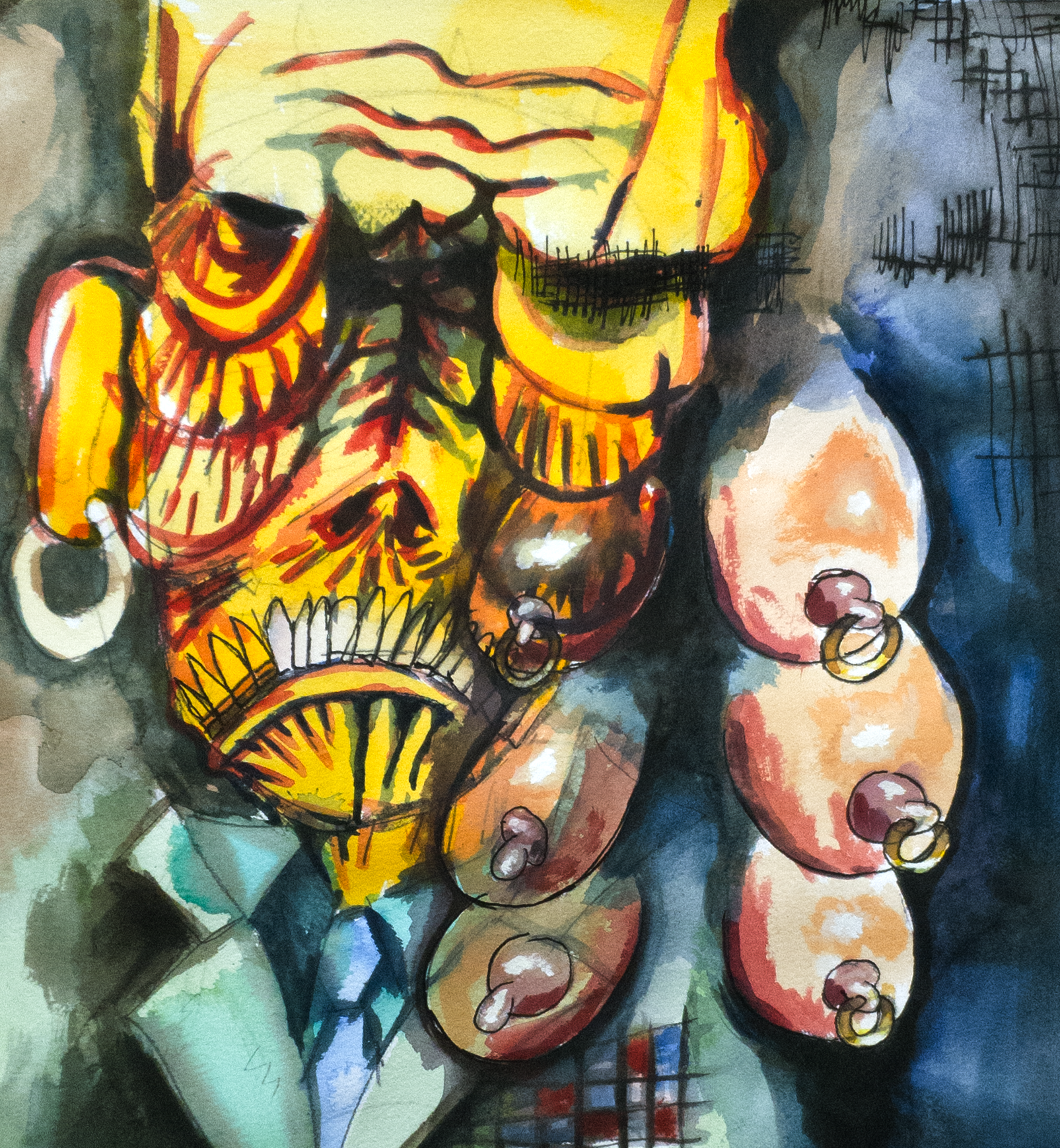Watercolor, india ink, gouache, graphite on paper