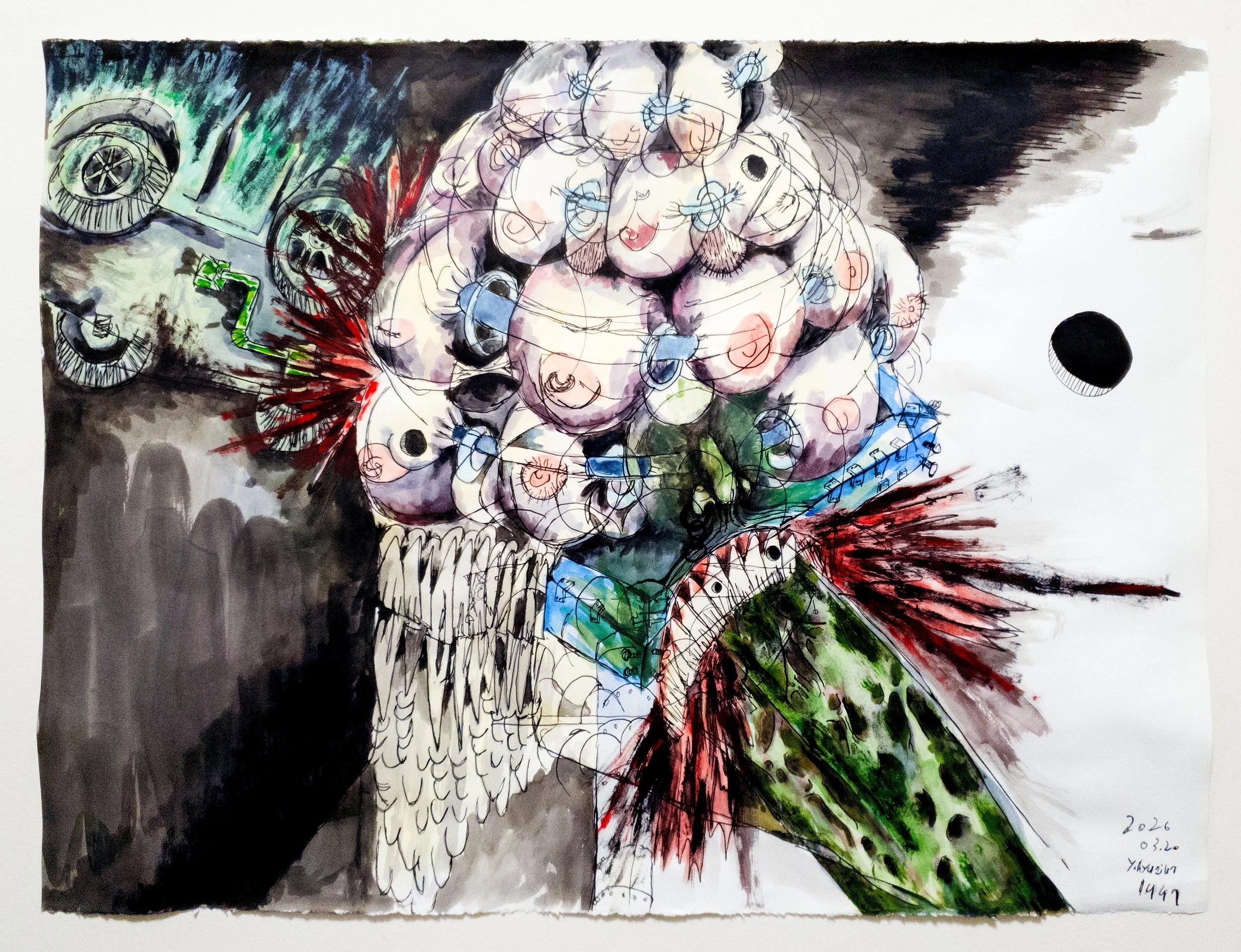 Acrylic, watercolor, india ink, trace of graphite on paper