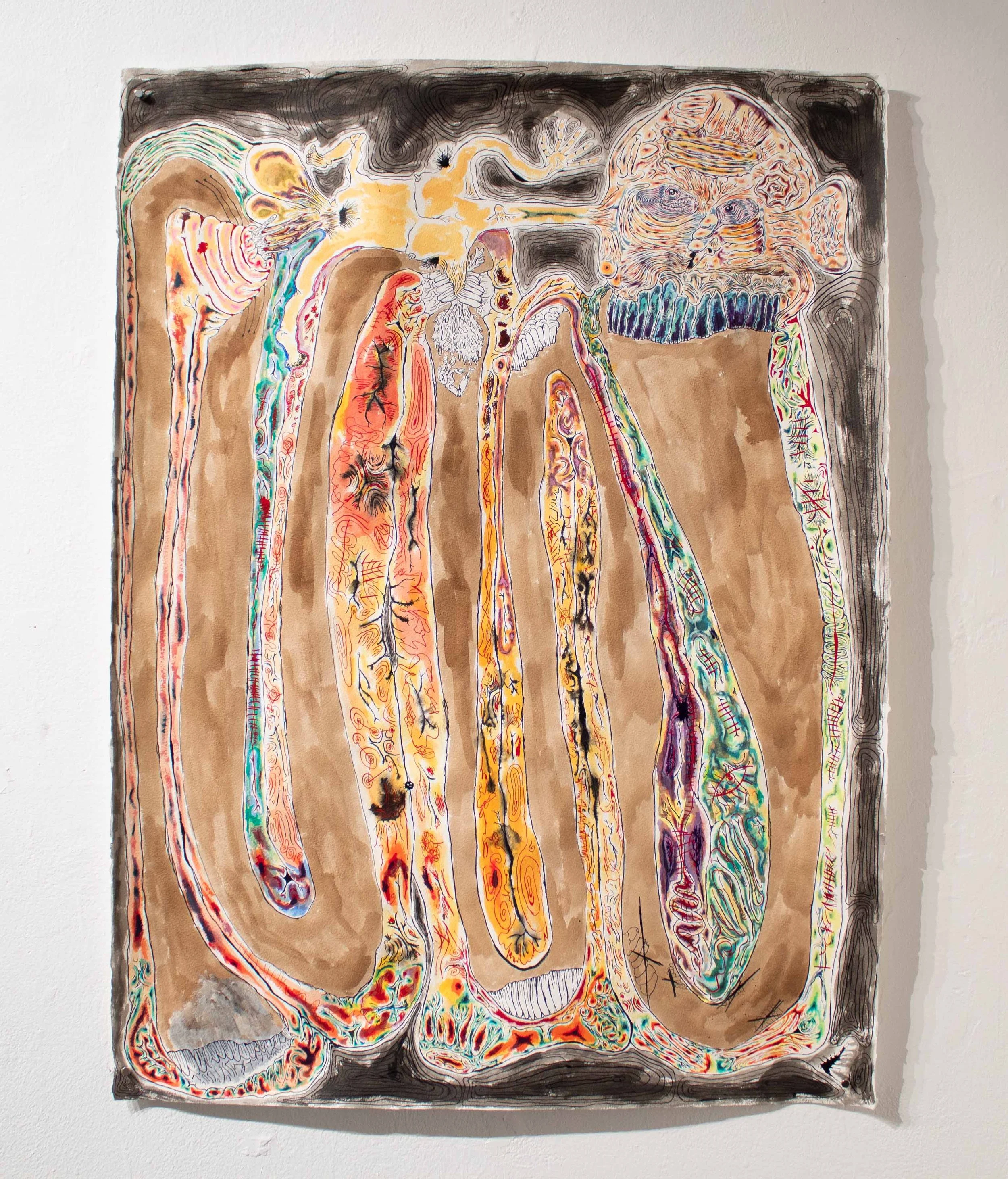 Shellac ink, India ink, Acrylic, Archival pen on paper