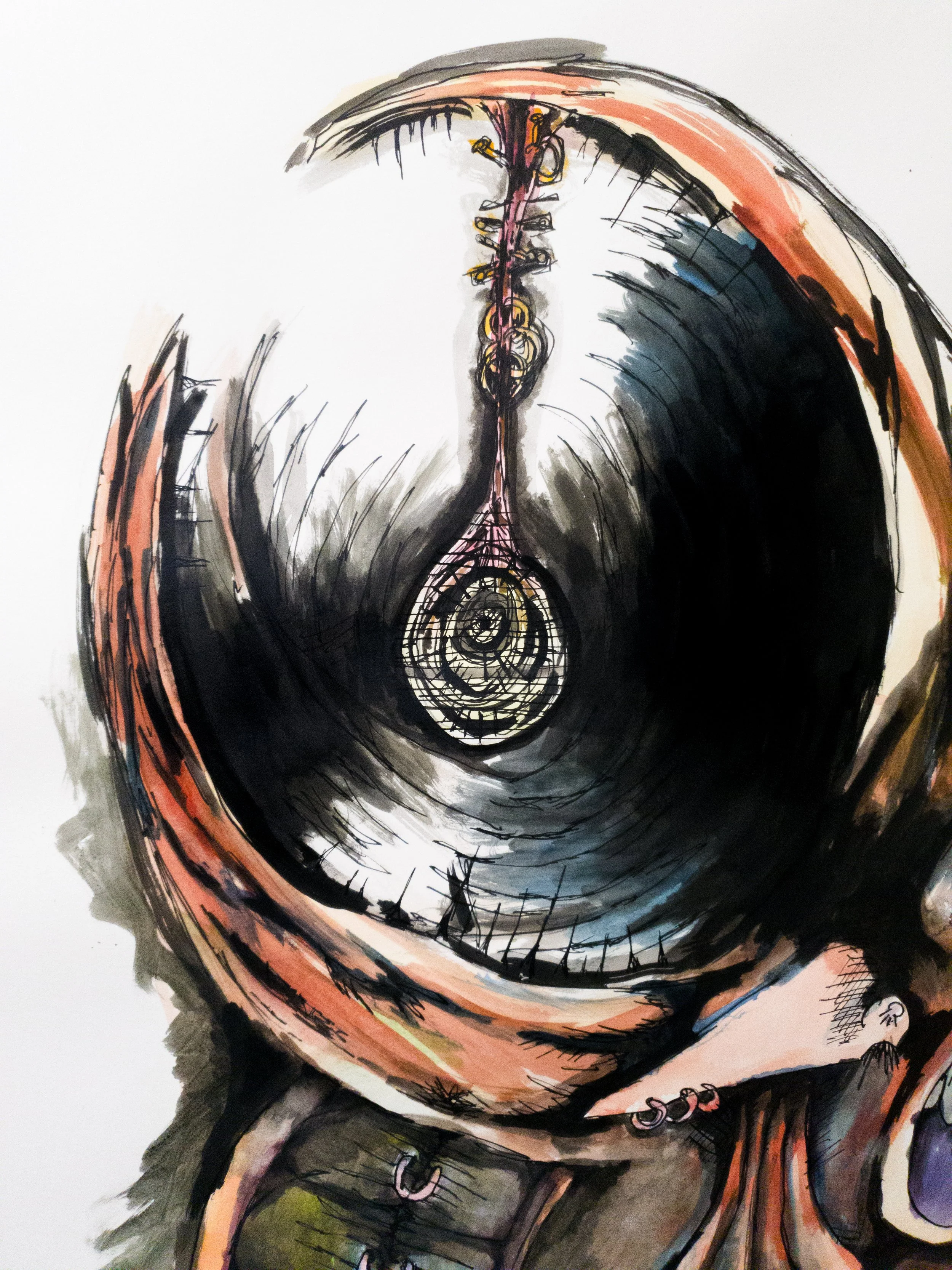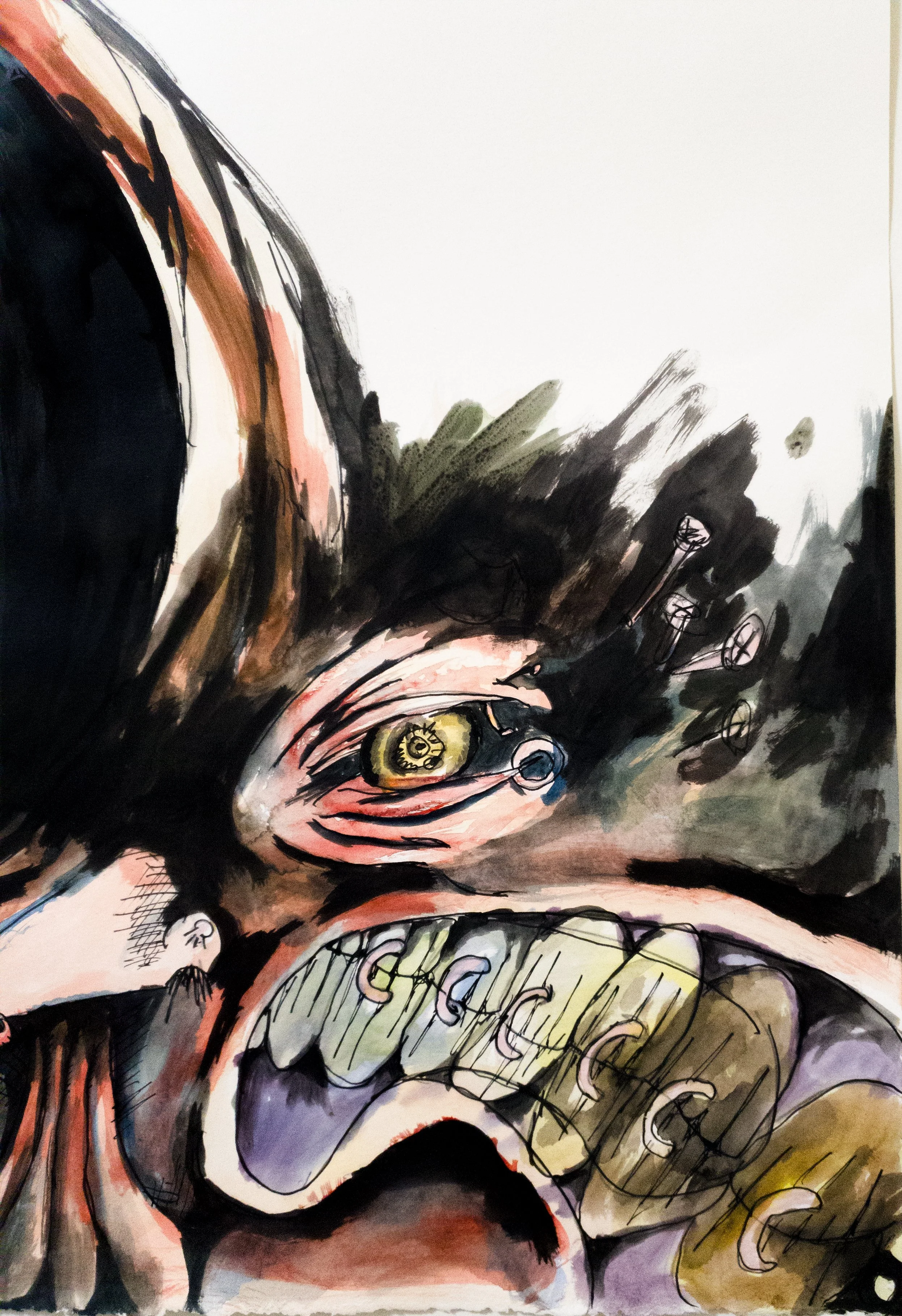 Watercolor, india ink, trace of graphite on paper